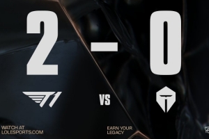第二局T1选出加里奥+皇子+妮蔻+卡蜜尔四团控阵容,前期T1上路四越二轻松逮捕哥哥与hang,哥哥飞机野区闪现向前换掉Keria妮蔻,369安蓓萨中路逮捕小吕布,TES打出1换2但经济落后1k。