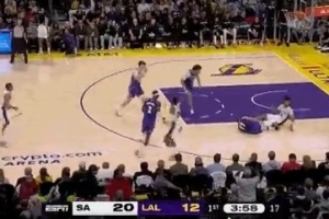 GIF-东契奇反击被卡斯尔绊倒
