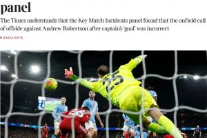 据悉,由三名前球员或教练、一名英超联赛代表和一名裁判公司官员代表组成的小组推翻了裁判的判罚结果。