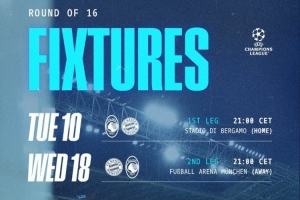 体育资讯2月27日讯 欧冠1/8决赛,亚特兰大对阵拜仁,两回合比赛时间已经确定。
