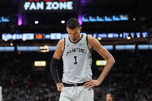 根据球队伤病报告显示,文班亚马(右脚踝酸痛)出战成疑。受伤病影响,文班缺席了昨天对阵掘金的比赛。